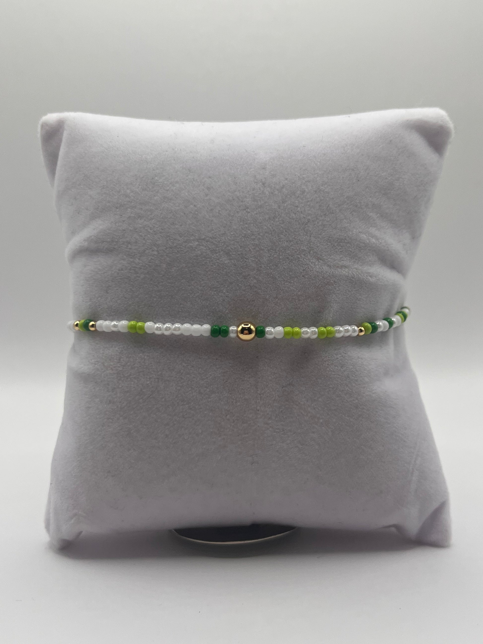 Get in the St. Paddy’s spirit with the "St. Patrick" Bracelet from Allie M. Jewelry’s St. Patrick’s Series! 🍀✨ This lucky bracelet features dark green, light green, white, and gold beads—giving total leprechaun vibes. Perfect for St. Patrick’s Day or just showing off your love for all things green! Wear it solo or stack it up for extra style. Snag yours now and add a little luck to your look! 💚🌈 #StPatricksDay #LuckyBracelet #GreenAesthetic #AllieMJewelry #StPatricksSeries